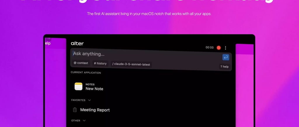 Alter é um pequeno assistente de IA que fica no entalhe do seu Mac e se conecta a tudo o que você faz.
