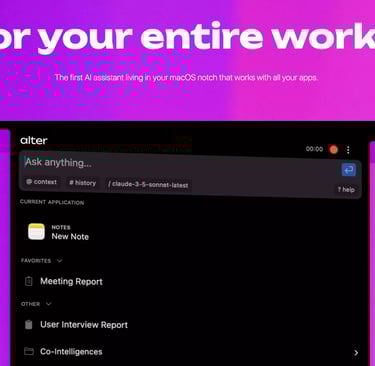 Alter é um pequeno assistente de IA que fica no entalhe do seu Mac e se conecta a tudo o que você faz. Ele vem com mais de 80 ações rápidas, pode gravar e resumir suas reuniões e até aceita comandos de voz para que você não precise usar as mãos. Você pode escolher entre executar os modelos de IA mais recentes ou manter a privacidade com modelos locais. É basicamente um atalho para usuários avançados aproveitarem mais o seu computador sem precisar lidar com aplicativos extras. 🧠💬 Ele vem com mais de 80 ações rápidas, pode gravar e resumir suas reuniões e até aceita comandos de voz para que você não precise usar as mãos. Você pode escolher entre executar os modelos de IA mais recentes ou manter a privacidade com modelos locais. É basicamente um atalho para usuários avançados aproveitarem mais o seu computador sem precisar lidar com aplicativos extras. 🧠💬